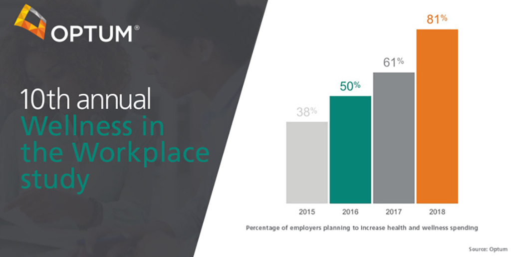More than 80% of employers said they are planning to increase their health and wellness budgets this year, more than double compared to 2009 (34%), according to the 10th annual Optum Wellness in the Workplace study.
