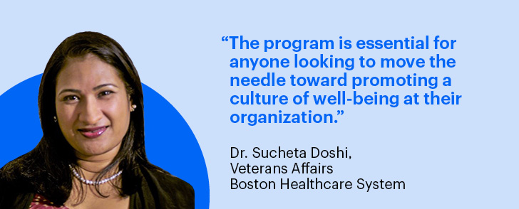 Participants selected to participate in the program benefit from virtual meetings, seminars, conferences, webinars and small-group breakout sessions focused on physician well-being, leadership development and performance improvement. They also complete two projects throughout the course of the program — one personal and one organizational — with ongoing support from mentors.