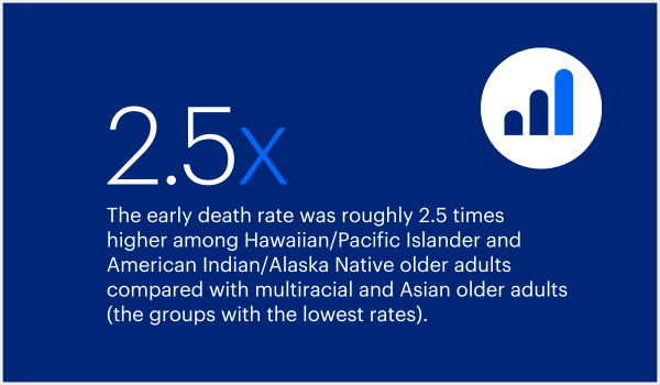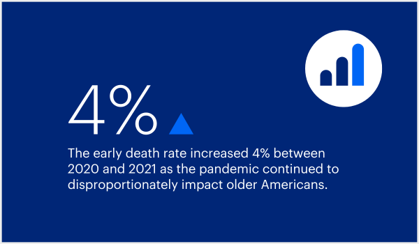 This year’s America’s Health Rankings Senior Report showcases recent shifts in long-term trends and highlights disparities in the health of older Americans. The report found that the early death rate rose in 2021 for the second consecutive year after a long-term decline. It also reveals that older adults have experienced far higher rates of drug-related deaths, as opioid deaths have surged among the older adult population in recent years. There are bright spots in the report, however, with rates of food insecurity down and access to high-speed internet up for older Americans.
